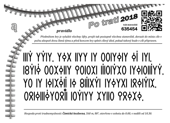 Znaky topologicky odpovídají písmenům abecedy – např. rovná čára (bez uzlů) může být C, G, I, J, L, M, N, S, U, V, W nebo Z. Na začátku textu lze odhadnout oslovení MILÉ TÝMY, při čtení dalších písmen počet možných znaků eliminuje kontext okolních písmen a užitá diakritika.