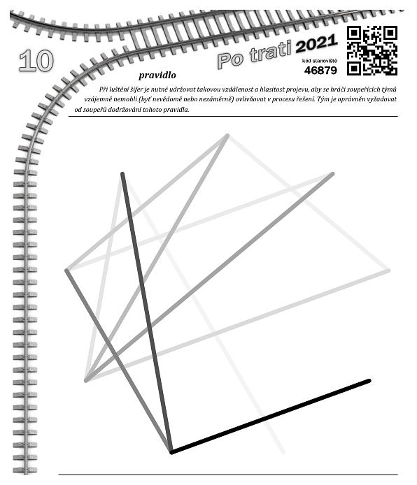 Řešení tvoří písmena kódovaná zobrazenými úsečkami v pořadí od nejsvětlejší po nejtmavší (napovídá vzájemné překrývání).