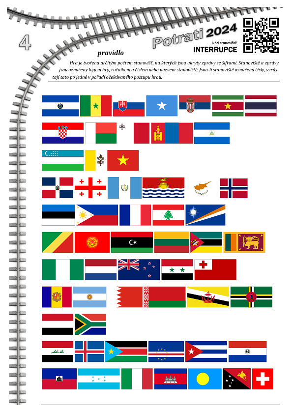 Myslím, že všichni ostatní si během těch 4 hodin (nebo i poté) kladli stejné otázky jako Sváťa. Někteří možná i hledali schůdek v místě očekávaného postupu. S těmi vlajkami šlo dělat opravdu hodně kejklí. A vložit tam místo (nebo navíc) triviáního upřesnítka ještě slovo “potrat” určitě šlo. Kromě možností níže zmiňovaných jsme pracovali třeba s poměry stran vlajek, které by mohly dát heslo jenom prohozením či nahrazením pár vlajek. Spíš si ale myslím, že úloha v testech prošla lépe než v terénu, což si vysvětluji tak, že při izolovaném luštění lépe vyniknou ta dvě křičící slova: “interrupce” a “Potrati”. V terénu tomu tak (očividně) nebylo.